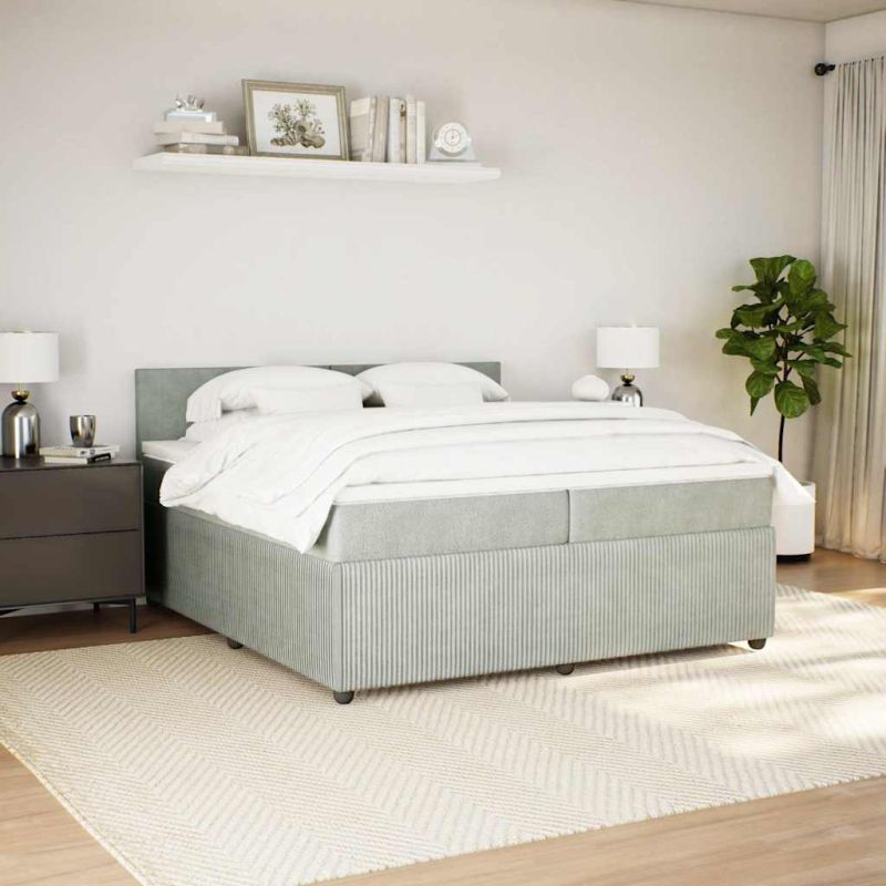 Боксспринг легло с матрак, светлосиво, 200x200 см, кадифе