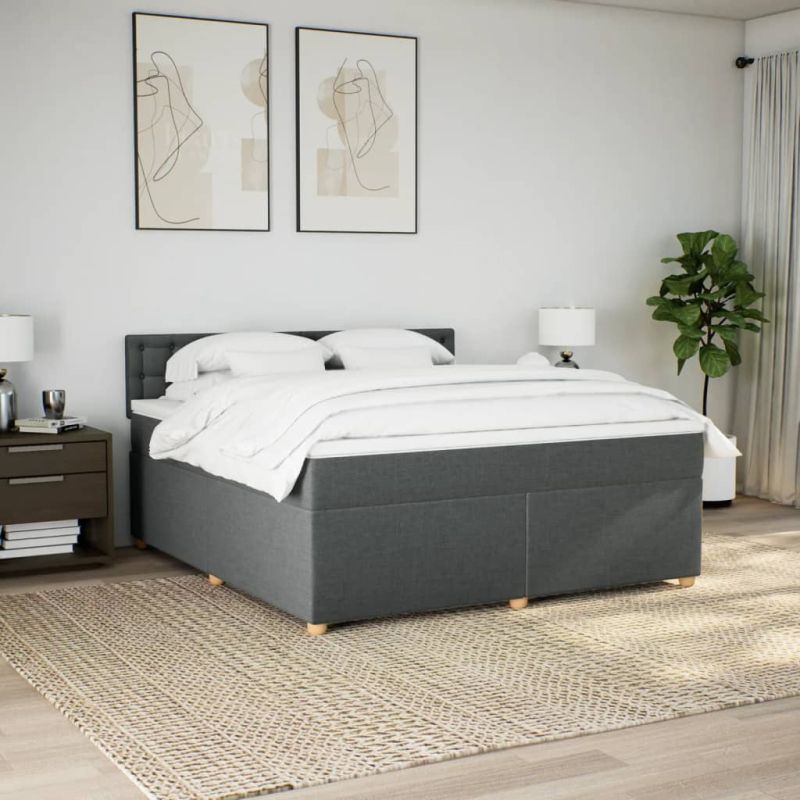 Боксспринг легло с матрак, тъмносиво, 180x200 см, плат