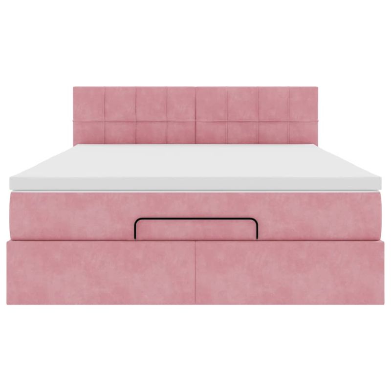 Османска легло с матрак и LED, розово, 140x190 см, кадифе