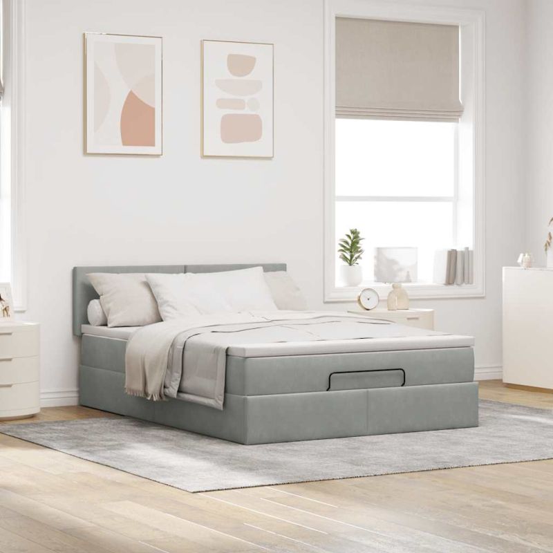Османска легло с матрак и LED, светлосиво, 140x200 см, кадифе
