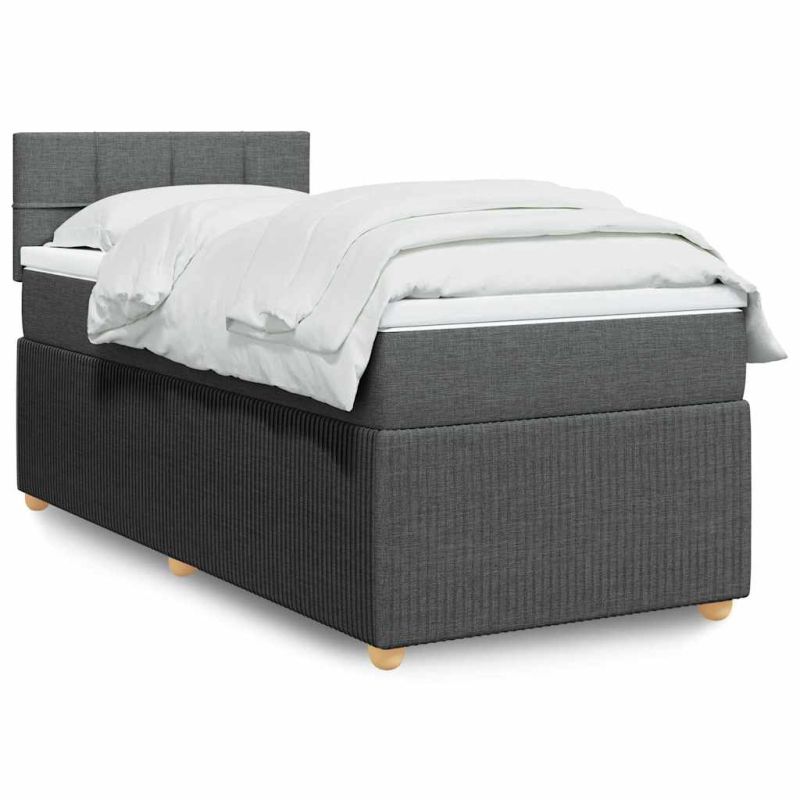Боксспринг легло с матрак, тъмносиво, 90x200 см, плат