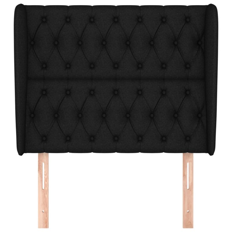 Горна табла за легло с уши, черна, 103x23x118/128 см, плат