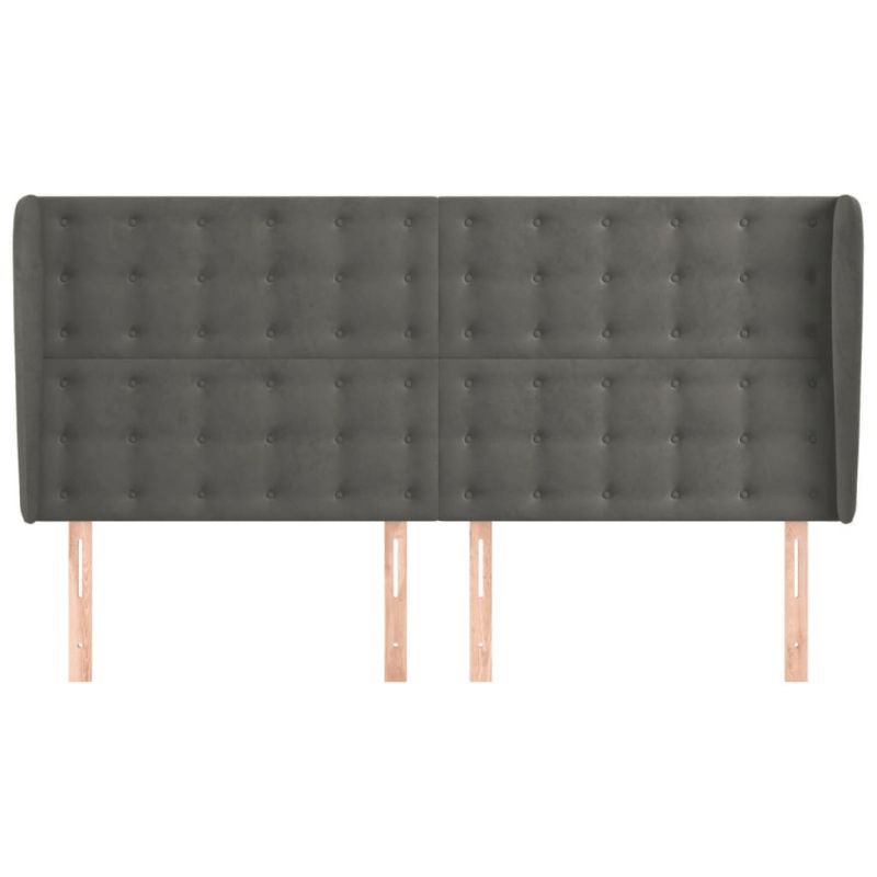 Горна табла за легло с уши, тъмносива, 163x23x118/128 см,кадифе