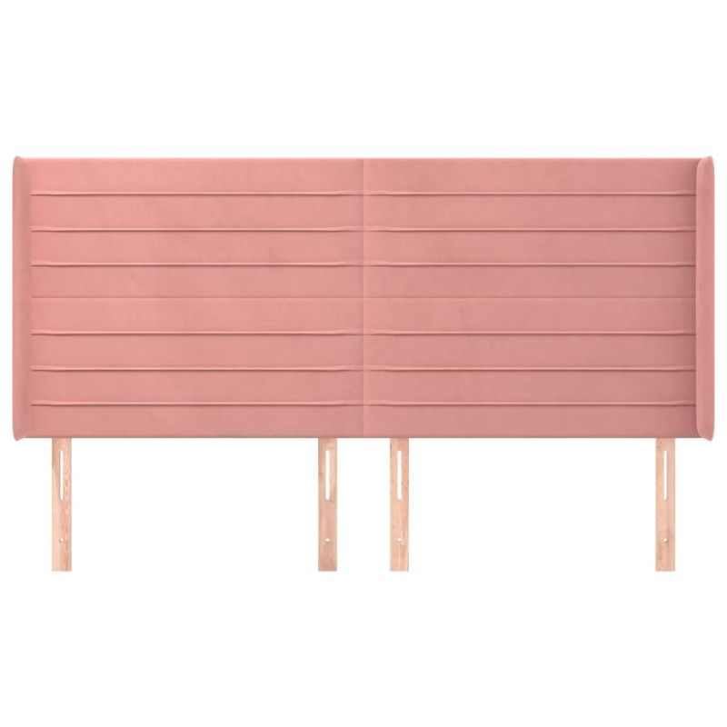 Горна табла за легло с уши, розова, 183x16x118/128 см, кадифе