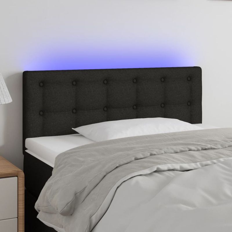LED горна табла за легло, черна, 90x5x78/88 см, плат