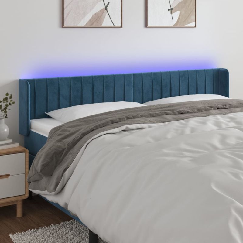 LED горна табла за легло, тъмносиня, 203x16x78/88 см, кадифе