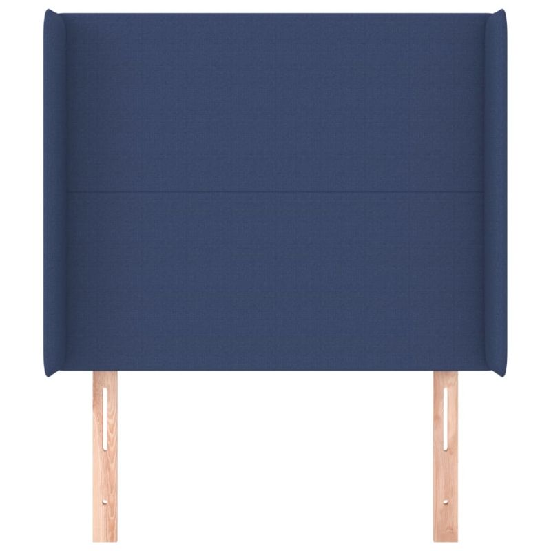 Горна табла за легло с уши, синя, 103x16x118/128 см, плат
