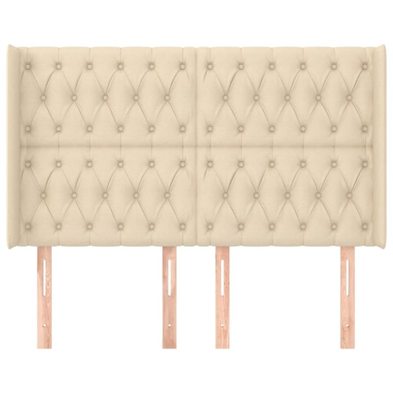 Горна табла за легло с уши, кремава, 147x16x118/128 см, плат