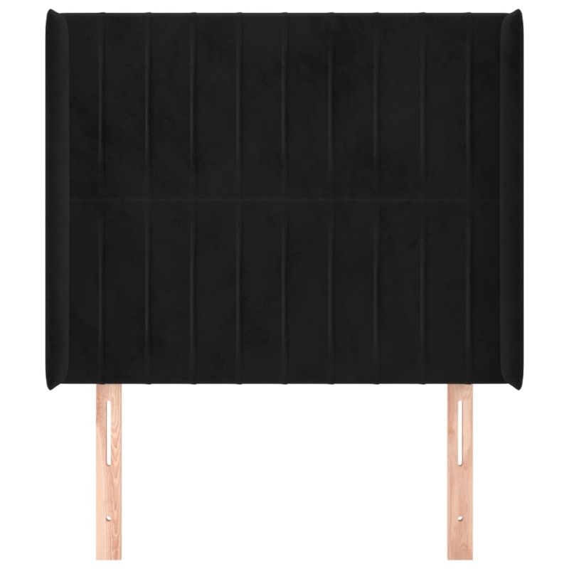 Горна табла за легло с уши, черна, 103x16x118/128 см, кадифе