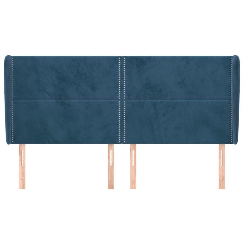 Горна табла за легло с уши, тъмносиня, 203x23x118/128см, кадифе