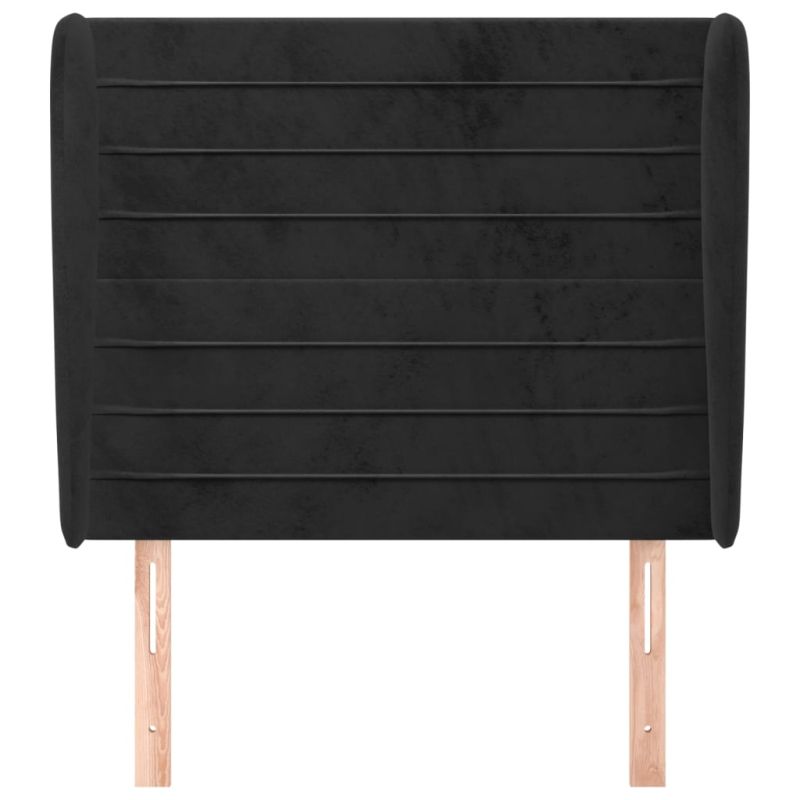 Горна табла за легло с уши, черна, 83x23x118/128 см, кадифе