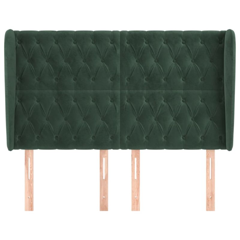 Горна табла за легло с уши тъмнозелена,147x 23x118/128см кадифе
