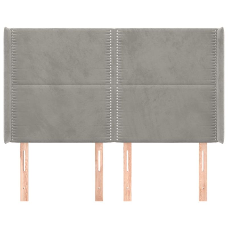 Горна табла за легло с уши, светлосива,147x16x118/128см, кадифе