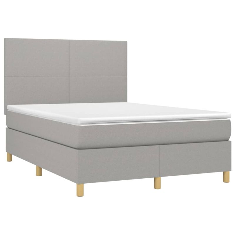 Боксспринг легло с матрак и LED, светлосиво, 140x200 см, плат