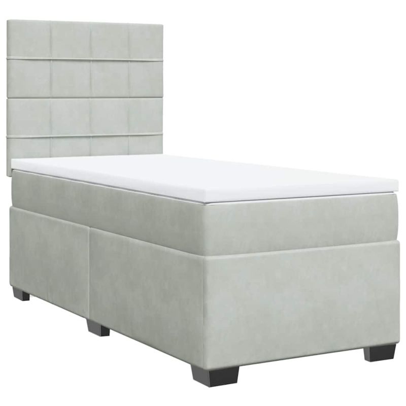 Боксспринг легло с матрак, светлосиво, 100x200 см, кадифе