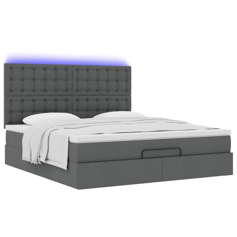 Османска легло с матрак и LED, тъмносиво, 180x200 см, плат