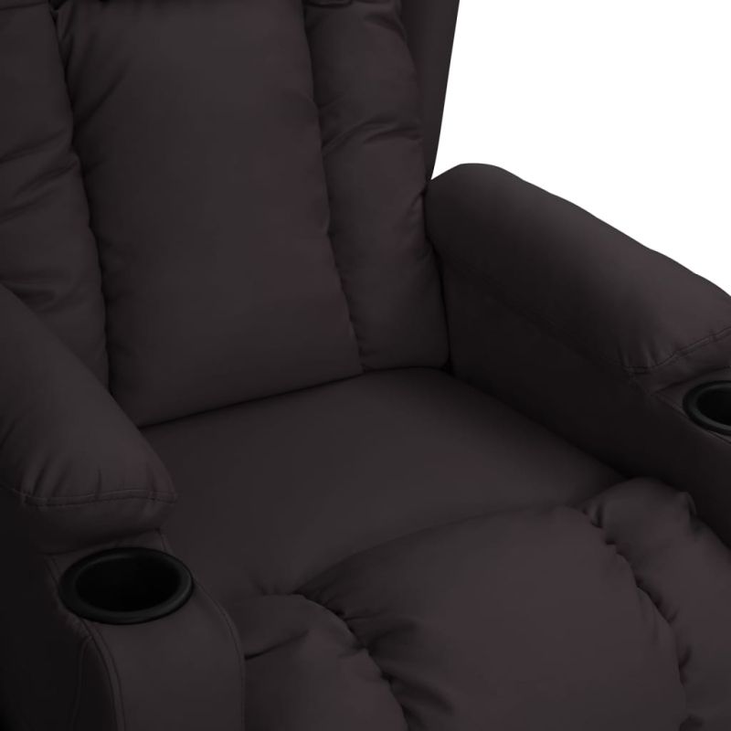 Облегнете се и се отпуснете в този изключително комфортен наклоняем стол! Функция за ръчно накланяне: Накланящият се стол е специално проектиран с 3 позиции на наклон, така че да можете да регулирате ръчно облегалката и поставката за крака според вашето удобство.Удобно седене: Дебело подплатената седалка, облегалката и широките подлакътници, покрити с изкуствена кожа, осигуряват уютно и топло усещане, което ви кара да се чувствате като в прегръдка, докато седите. Изкуствената кожа е много издръжлив материал. Устойчива е на петна, което я прави лесна за почистване с влажна кърпа. Гладката повърхност също така придава луксозен вид и красотата на истинската кожа.Здрава и стабилна рамка: Рамката, изработена от дърво и метал, осигурява здрава структура и стабилност. Този накланящ се фотьойл е удобен и издръжлив.