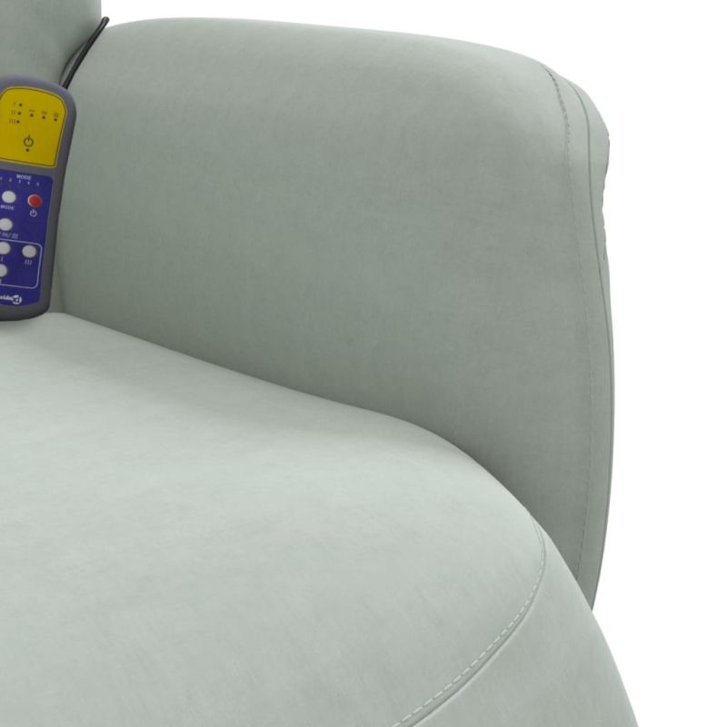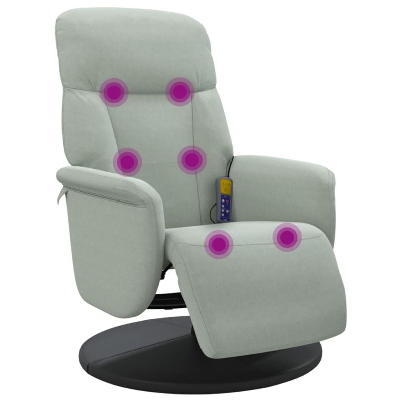 Масажен реклайнер стол с поставка за крака, светлосив, кадифе