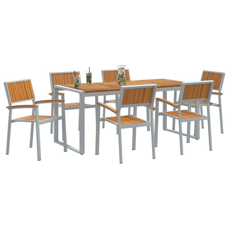 Този модерен комплект за хранене на градина ще ти превърне градината или терасата в стилно местенце за ядене. С чистите си линии и минималистичен дизайн, той отлично улавя духа на модерния живот на открито. Перфектен е за вечеря или закуска на свеж въздух, изглеждайки супер и вършейки работа. Представи си семейни събирания под звездите или лениви уикендни закуски, наслаждавайки се на простотата и функционалността на този страхотен комплект. Устойчив на времето: Този комплект е проектиран да устоява на дъжд, слънце и вятър. Изработен е от масивна акациева дървесина и здрава стоманена рамка, така че ще издържи на всичко. Покриването на дървото при лошо време ще удължи живота му, което го прави страхотен за употреба навън през цялата година. Издръжлив дизайн: Масивната акациева дървесина и стоманената рамка ти дават здрав и дълготраен вариант за хранене. Тази комбинация добавя не само устойчивост, но и рустикален чар, съчетавайки модерен стил с полезност. И не изисква много грижи, предоставяйки години на удоволствие. Простор за сядане: Голямото оформление е подходящо за много хора, което го прави идеален за семейни събирания или социални събития. Правоъгълната форма насърчава разговорите и връзката, създавайки уютна обстановка за споделяне на ястия с приятели или семейство. Компоненти: Комплектът не само че включва масивни подлакътници от акациева дървесина, които добавят топлина и стил, но и здравите стоманени крака осигуряват стабилна опора. Богатият кафяв завършек свързва всичко заедно, създавайки красив вид, който се вписва във всяко открито пространство. Грижи и инструкции за поддръжка: За да изглежда добре, просто го избърсвай с влажна кърпа от време на време. Използвай защитно покривало, когато не го ползваш, за да го предпазиш от лошото време. За сглобяване са нужни двама с отвертка, за да гарантират стабилност и сигурност.