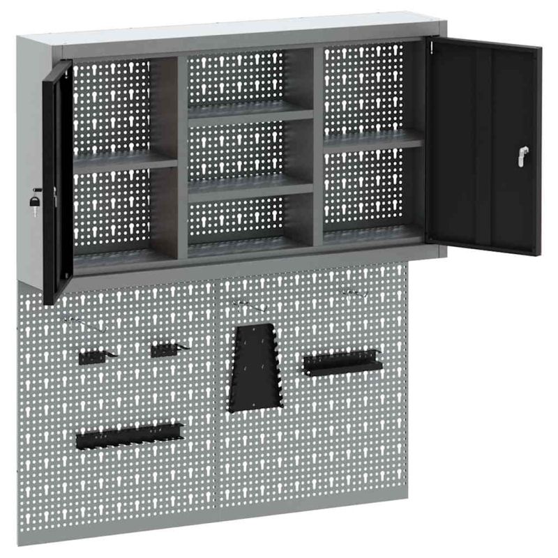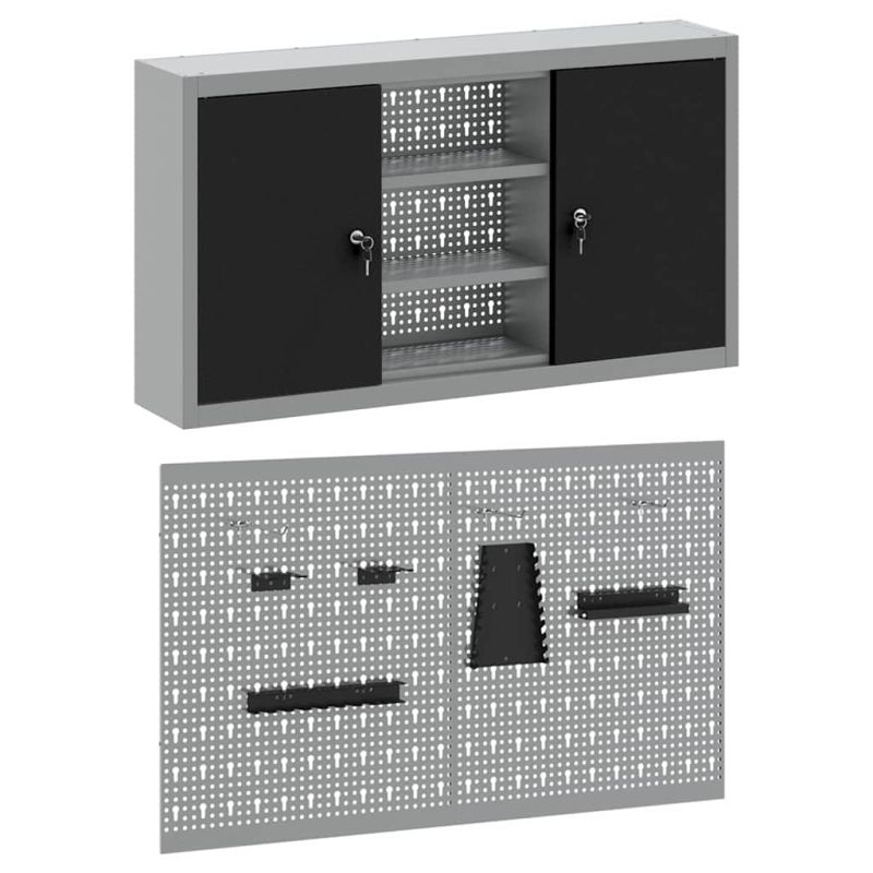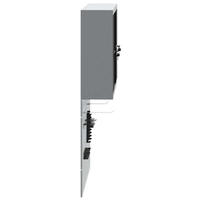 Този универсален комплект за стенен шкаф за инструменти и перфорационна дъска е задължителен за всяка работилница или гараж. С елегантен индустриален дизайн, той носи градски стил с прахово боядисаното желязо и гладкия сив завършек. Предназначен за вътрешна употреба, шкафът предлага надеждно решение за съхранение на инструменти, осигурявайки бърз достъп, а интегрираната перфорационна дъска добавя функционалност с възможност за персонализиране на разпределението на инструментите. Материали: Изработен от здраво прахово боядисано желязо, този комплект шкафове съчетава здравина и стил. Гладката текстура и сивият завършек придават модерен индустриален вид и дълготрайност, а също така се вписват лесно в различни интериорни теми. Обширни компоненти: Комплектът включва метални рафтове от прахово боядисано желязо, осигуряващи стабилно съхранение, което не се отказва при тежест и редовно използване. С перфорационните дъски, потребителите могат лесно да организират инструментите си, оптимизирайки пространството за всякакви видове инструменти. Функционален дизайн и стил: С конструкция, която може да се монтира на стена, шкафът освобождава ценното пространство на пода, което го прави идеален за работилници или гаражи, където е нужна ефективна организация. Това помага в усилията за поддържане на подредено и чисто работно място. Гъвкави възможности за използване: Перфектен за професионални работилници, но и супер удобен за домашни гаражи или DIY пространства. Тази адаптивност позволява на потребителите лесно да се придвижват между различни среди и проекти. Лесни инструкции за поддръжка: Поддържането на шкафа е лесно - просто го бърсиш със суха кърпа, за да запазиш изисканото му изглеждане. Простите стъпки за почистване гарантират продължително задоволство и дълготрайност на шкафа.