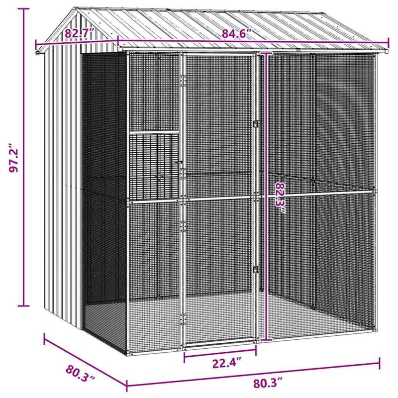 Клетка за птици Сив 215 x 210 x 247 см Поцинкована стомана