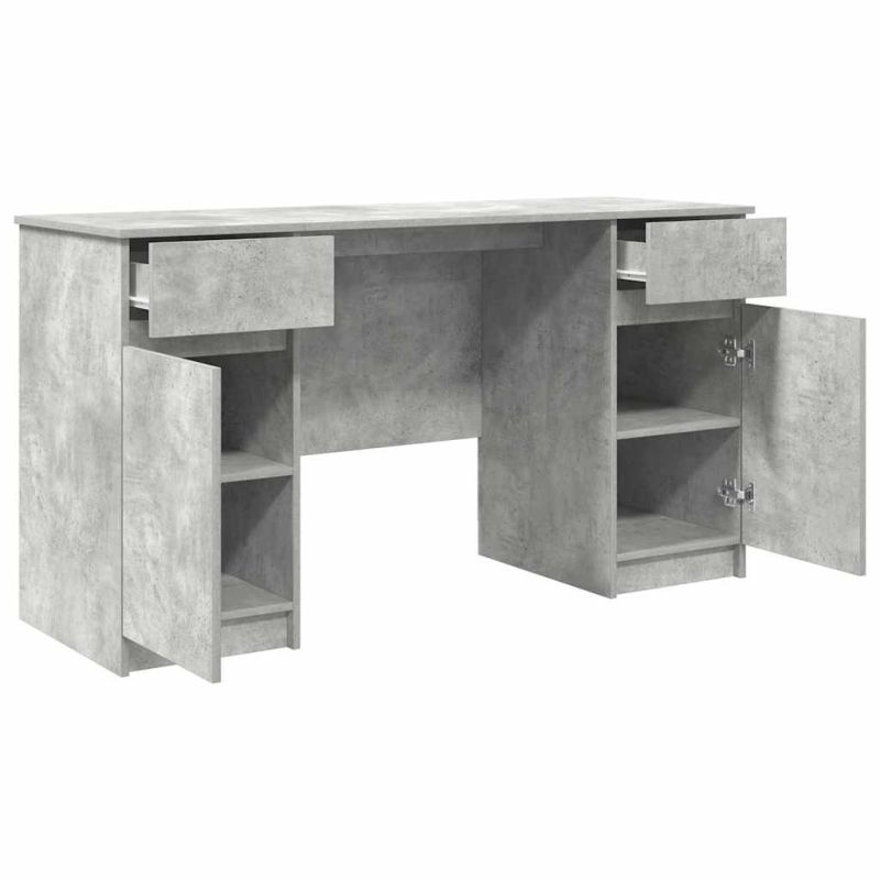 Бюро с чекмедже Бетонно сиво 140 x 49 x 76 см Инженерно дърво