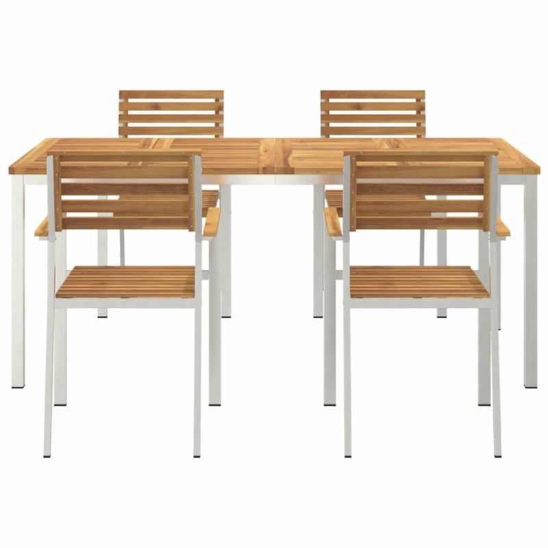 Този комплект за градинско хранене носи съвременен шик! В него има гладки текстури и прост дизайн. Независимо дали обичаш хранене на открито или неформални събирания, той ще се впише идеално във всяка градина. Изчистеното, матово покритие съчетава модерен и рустикален стил. Идеален е за семейни срещи или уютни вечери, правейки градината ти приятно място за хранене. Здрав корпус от неръждаема стомана - Изработен да издържи, този комплект има здрав корпус от неръждаема стомана, който се справя добре с времето. Модерният дизайн добавя стил на градината ти. Удобни подлакътници и облегалки - С плоски подлакътници и красив дизайн на облегалката, всичко е шиково и комфортно. Гладките подлакътници са супер удобно допълнение, а артистичната облегалка придава чар. Фиксирана рамка с ламели - Този комплект има стабилна рамка с ламели, специално направена за открито. Позволява циркулация на въздуха и бързо изсъхване, а ламелите са достатъчно здрави, за да издържат на износване. Матова, устойчива на петна повърхност - Матово покритие изглежда свежо, без да е натрапчиво. Повърхностите са устойчиви на петна, което прави почистването лесно и поддържа мебелите в перфектен вид. Лесни инструкции за поддръжка - Поддържай мебелите в отлично състояние, като използваш водонепропускливо покривало, когато не са в употреба. Прави редовно почистване с нежни методи и ги съхранявай на хладно, сухо място, за да се радваш на тях по-дълго.