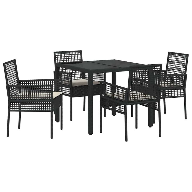 Комплект за хранене в градината 5 pcs Черно Полиратан