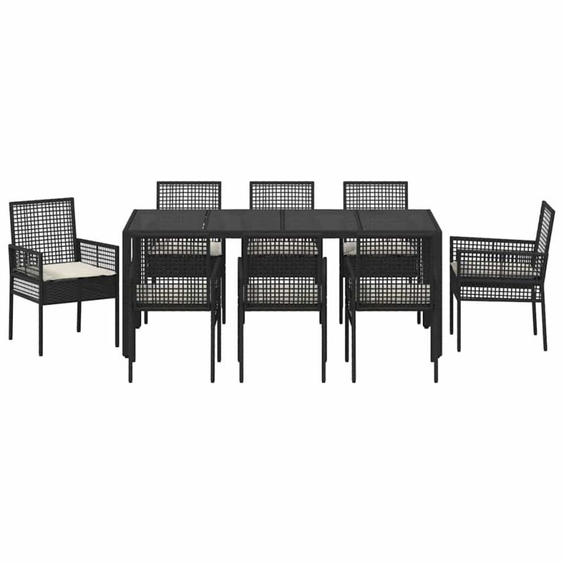 Комплект за хранене в градината 9 pcs Черно Полиратан