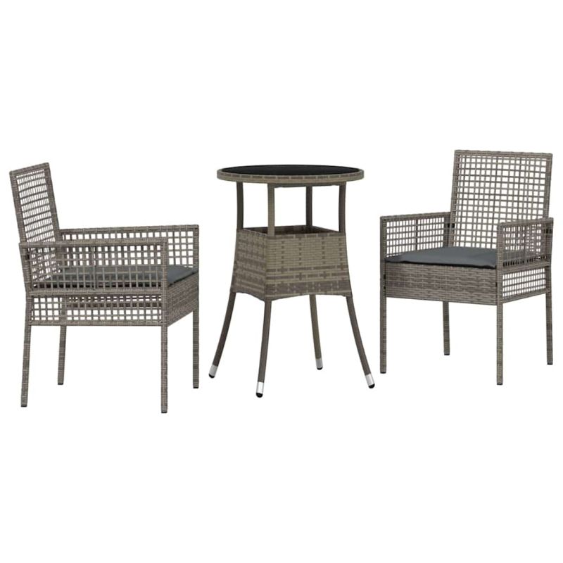 Комплект за хранене в градината 3 pcs Сив Полиратан