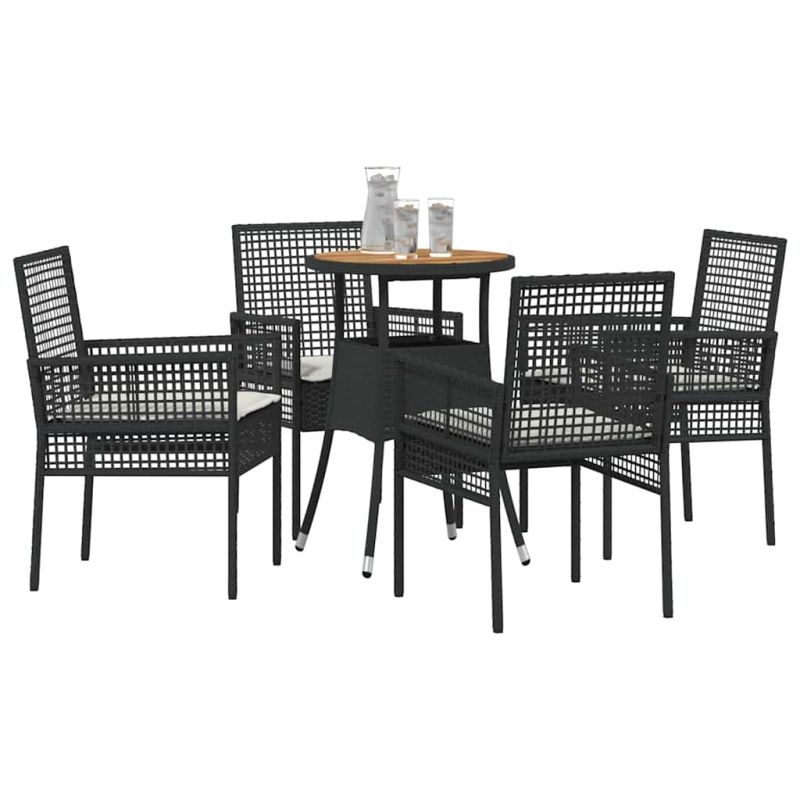 Комплект за хранене в градината 5 pcs Черно Полиратан