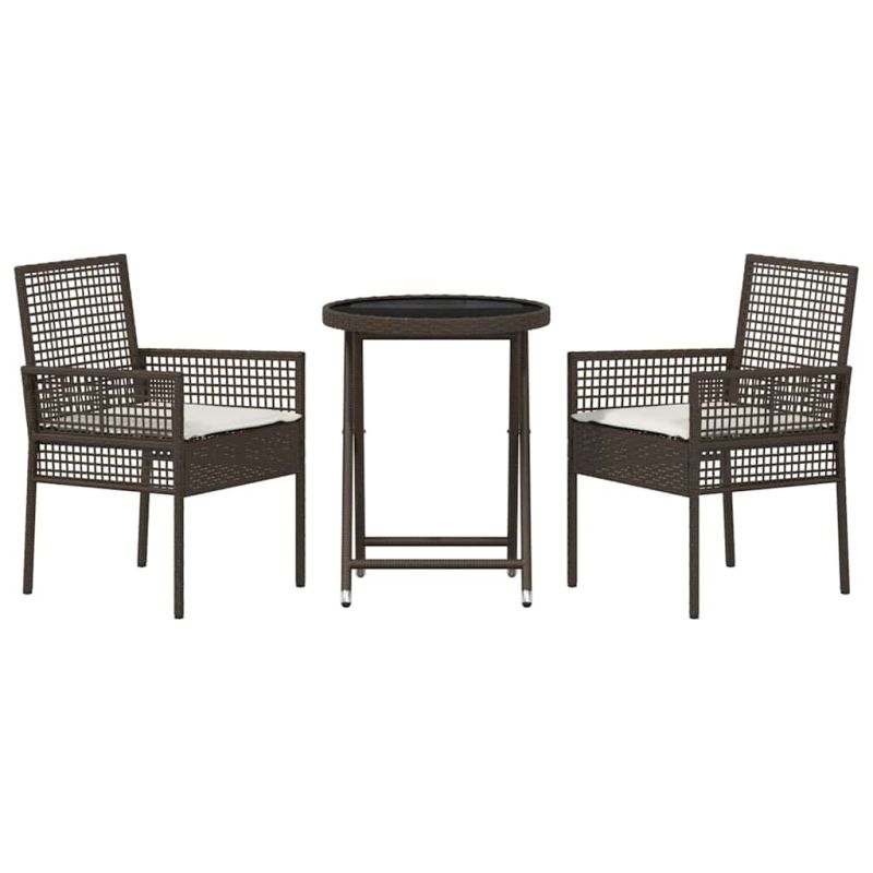 Градински бистро комплект 3 pcs Кафяво Полиратан