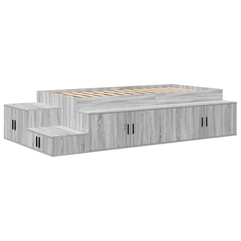 Легло с място за съхранение Сив Сонома 90 cm Инженерно дърво