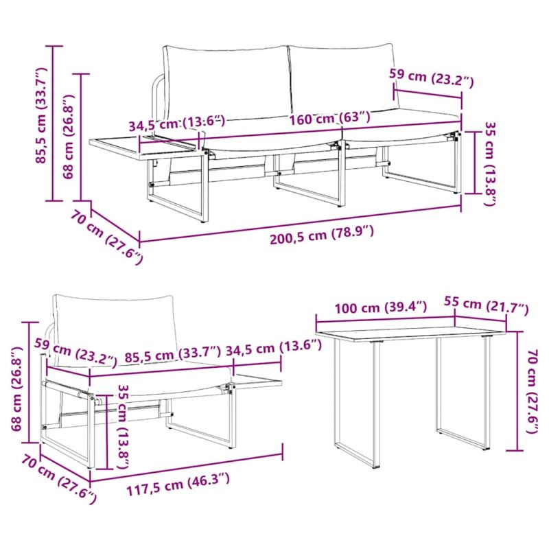 Този страхотен градински комплект за хранене е тук, за да внесе малко класа и практичност в откритите ви пространства. Независимо дали правите парти или просто се наслаждавате на красивото време, стилният му вид го прави отличен избор за всяка патия или градина. Материали: Градинският комплект за хранене е изработен от качествена стомана, която е здрава и устойчива на времето. Стоманата изглежда модерно и осигурява дълготрайност. Достатъчно е здрава, за да предлага отлично поддържане на формата, докато запазва изчистен вид. Включени компоненти: Комплектът включва маса, двуседален диван и стол, така че има пространство за всички. Всяка част е проектирана с удобство на ум, независимо дали организирате събиране или просто искате да се храните навън. Тези елементи работят отлично заедно и създават супер атмосфера на открито. Характеристики / Функция / Дизайн: Проектиран за открито, комплектът е устойчив на времето и покритие от UV лъчи, така че не е проблем да се ползва под слънце или дъжд. Умният дизайн е идеален за ежедневна употреба, където да се разхождате с приятели, да се забавлявате или просто да релаксирате. С акцент на здравина и стил, той повишава качеството на открития живот. Препоръчителна употреба: Чудесен за патии, балкони и градини, този комплект за хранене внася както функция, така и естетика на всяко открито пространство. Модерният му вид лесно се вписва в различни условия, идеален за импровизирани събирания или уютни вечери. Лесно може да се адаптира за социални или частни моменти. Грижа и поддръжка: Поддържайте го в добро състояние, като го избърсвате с кърпа след употреба. Избягвайте агресивни химикали, за да го запазите безопасен. Когато времето е лошо, съхранявайте го на сухо, за да му удължите живота, така че винаги да е готов за вас.