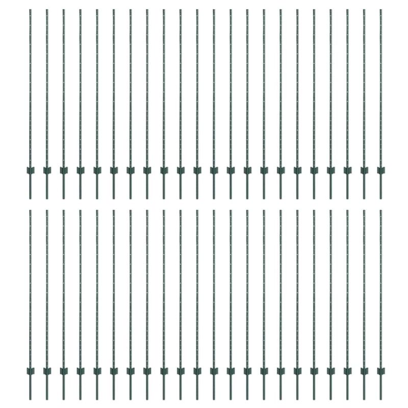 Оградни стълбове 44 pcs Зелен 200 cm Стомана