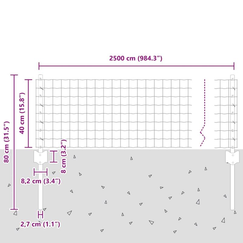 Ограда и колче Сив 0,4 x 25 м Стомана
