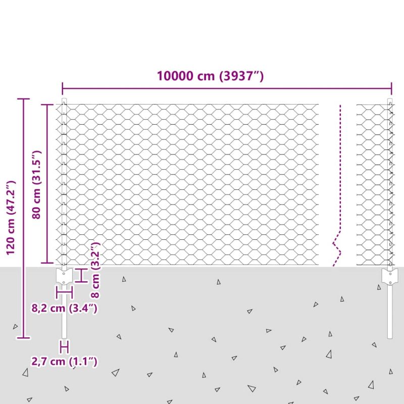 Ограда и колче Сив 0,8 x 100 м Стомана