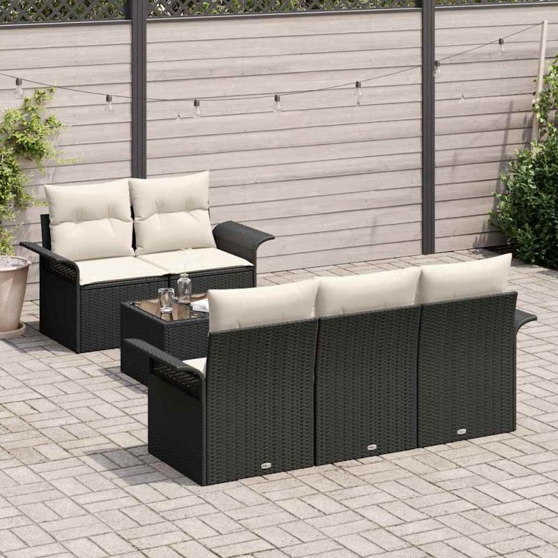 Комплект дивани с възглавница 6 pcs Черно полиратан