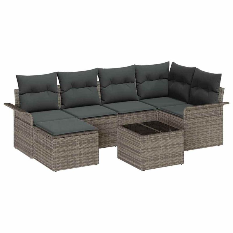 Градински Софа Комплект с възглавница 7 pcs Сив полиратан