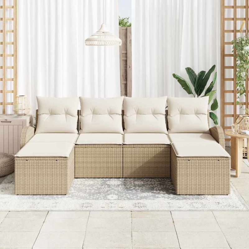 Градински Софа Комплект 6 pcs Бежово Полипропилен Ратан