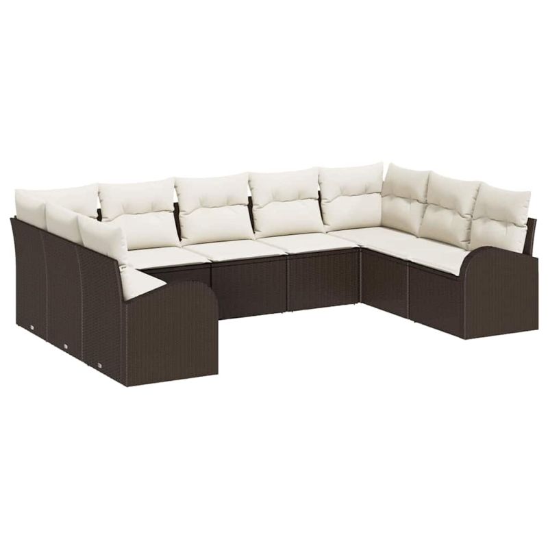 Комплект дивани с възглавница 9 pcs Кафяво Полипропилен Ратан