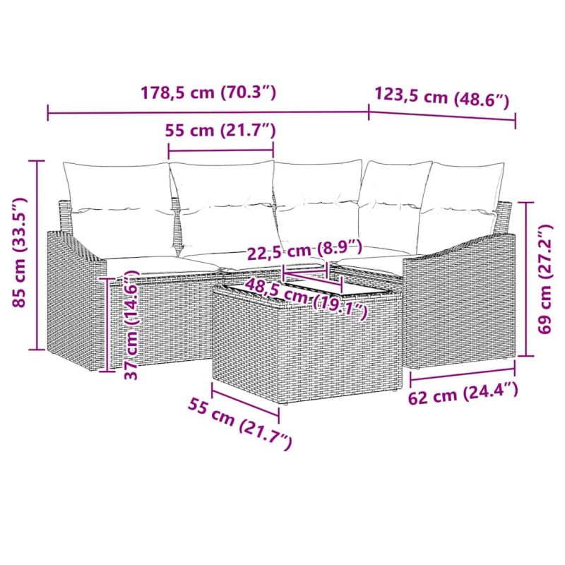 Комплект дивани с възглавница 5 pcs Бежово полиратан