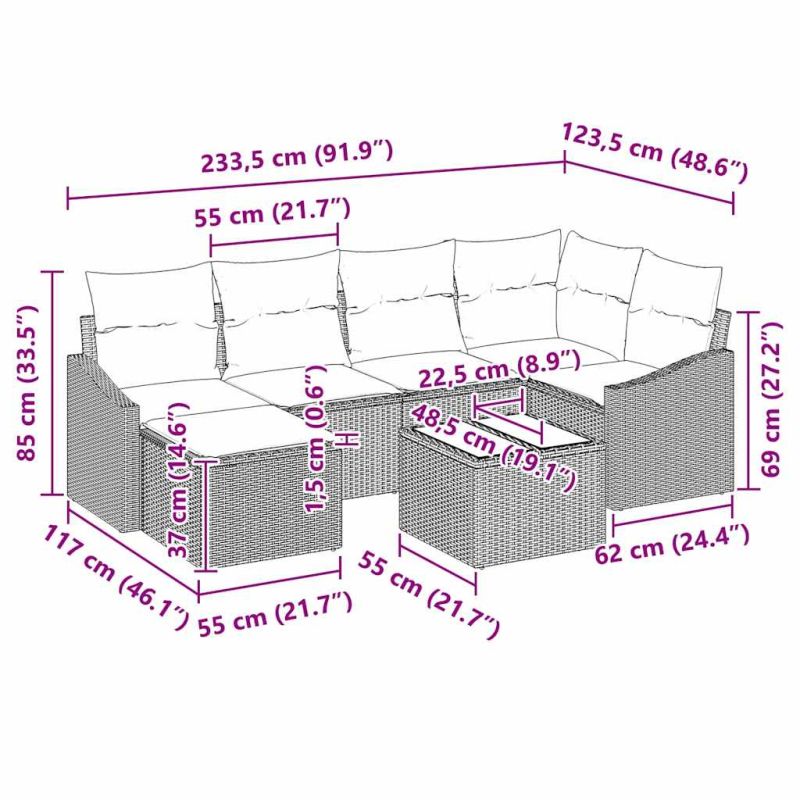 Градински Софа Комплект 7 pcs Сив Полиратан