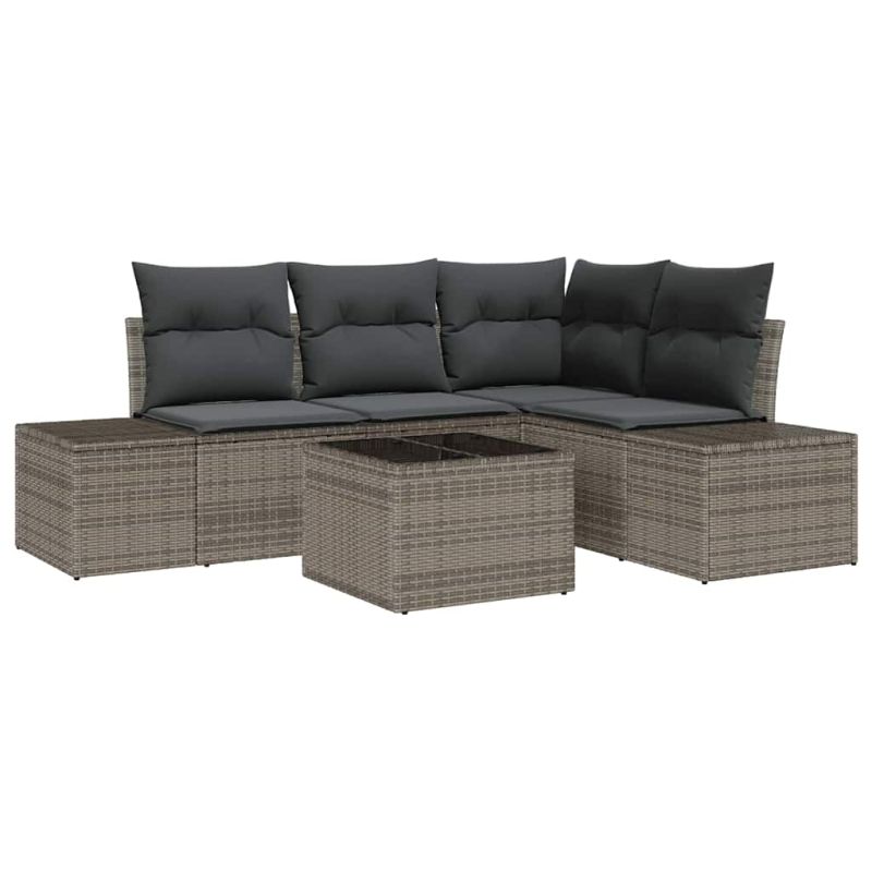Градински Софа Комплект 5 pcs Сив полиратан