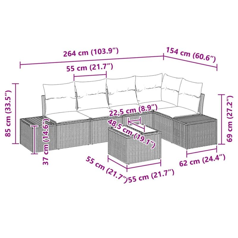 Градински Софа Комплект 6 pcs Черно полиратан