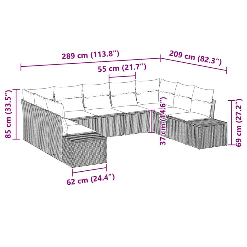 Градински Софа Комплект 9 pcs Светлосиво полиратан