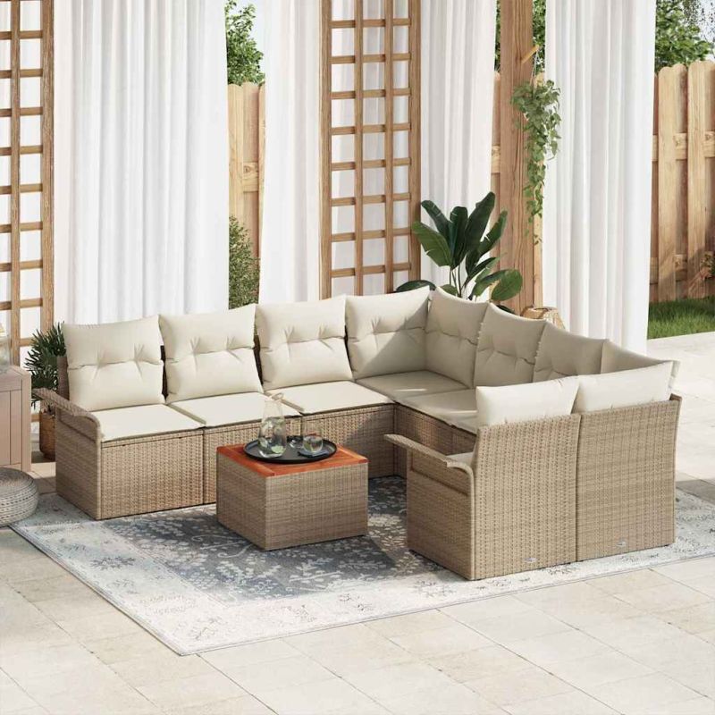 Градински Софа Комплект 9 pcs Бежово Полиратан