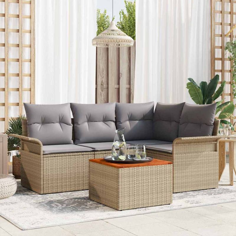 Градински Софа Комплект 5 pcs Бежово Полиратан