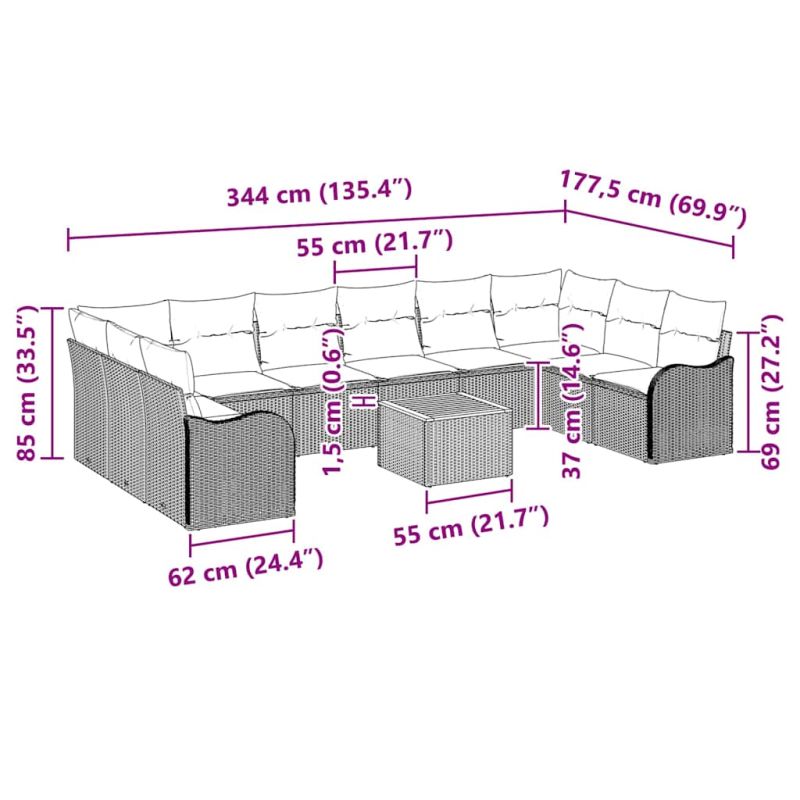 Градински Софа Комплект 11 pcs Бежово Полиратан