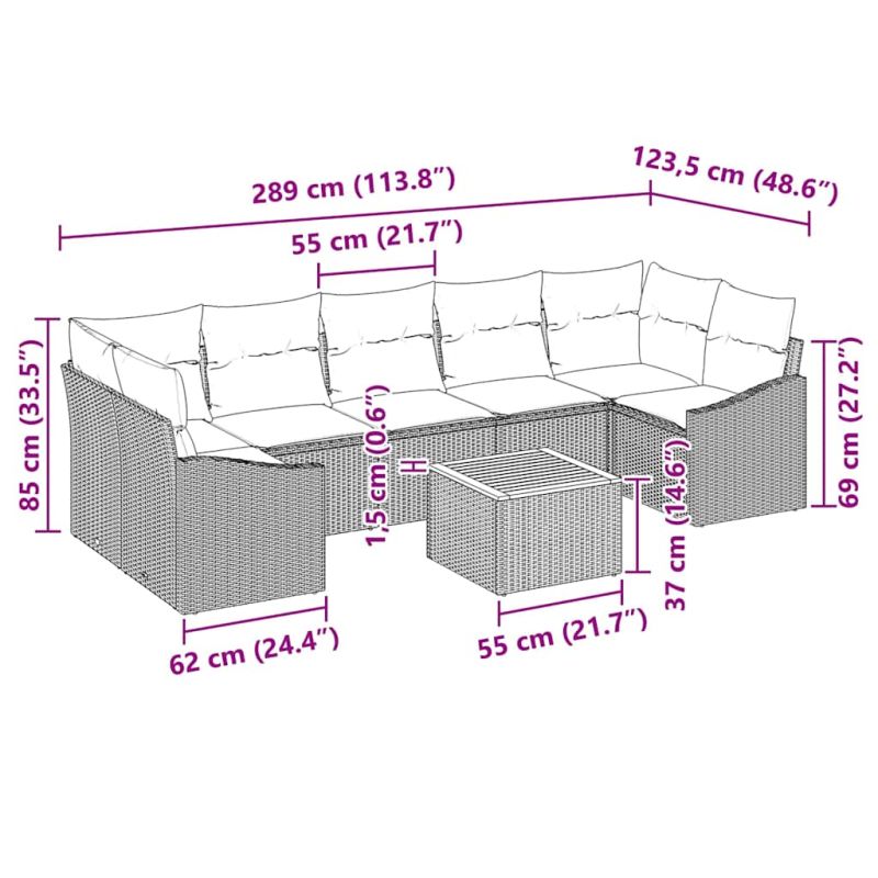 Градински Софа Комплект с възглавница 8 pcs Сив Полиратан